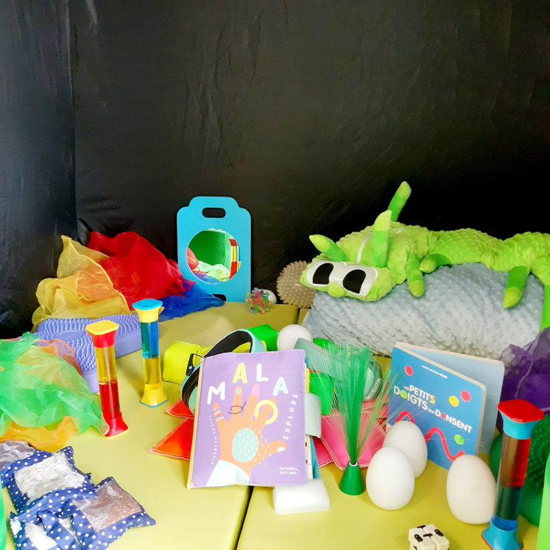 La petite bulle à histoires s'est posée à la bibliothèque de Montreuil-sur-Maine : une cabane, pleine de livres et d'objets qui favorisent l’éveil des sens et est particulièrement adaptée aux enfants en difficulté de lecture.